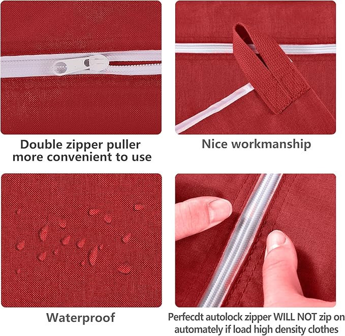 Hanging Laundry Hamper Bag Behind Door Hampers for Laundry Hanging Save Space Zipper Laundry Hamper Door Hanging with 2 PCs Stainless Steel Hooks Suction Hooks for Wall/Bathroom (Red