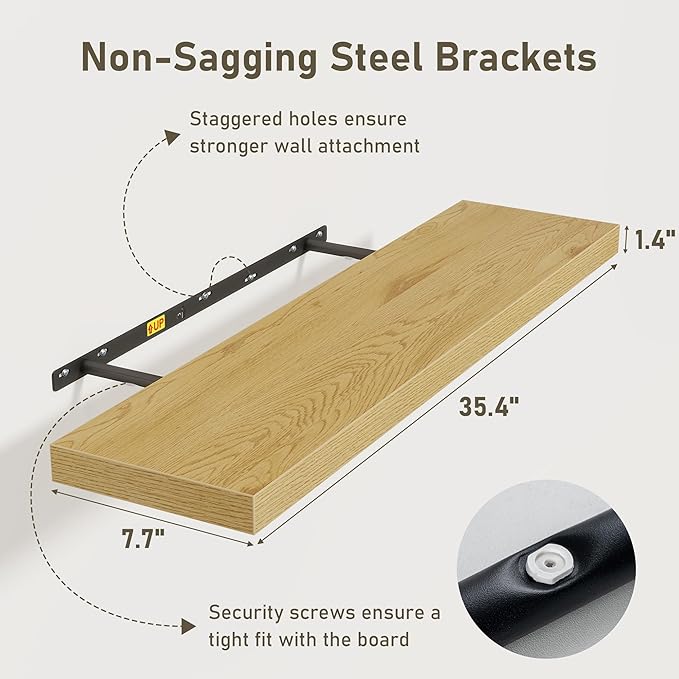 Fun Memories 36 x 8 Inch Floating Shelves for Wall, Farmhouse Bathroom Shelves Set of 2, Wood Wall Shelves 36 Inch Long, 36 x 8 x 1.4 Inch, Oak Color