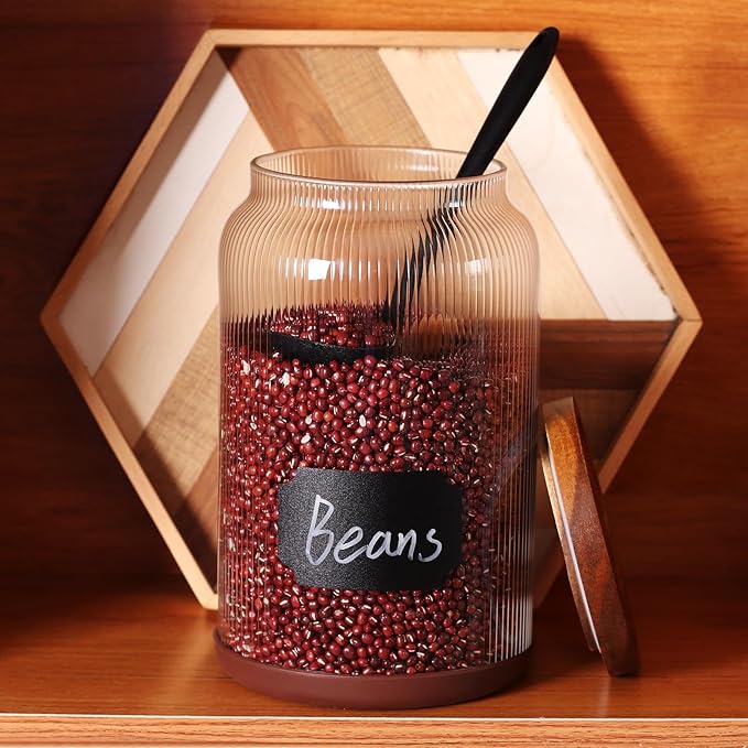 - Complete Set with Accessories**: Includes a silicone ring spoon, black labels, and a non-slip silicone base, enhancing functionality and organization in your storage spaces.