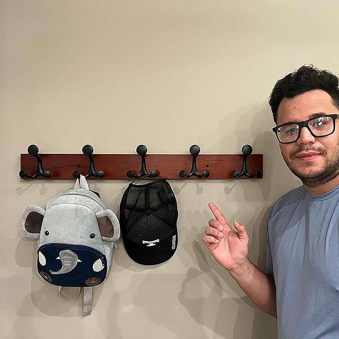 - 【Sturdiness & Large spacing】Solid wall mount coat rack with 5 triple hooks, hang 5 or 10 jackets per rack. Plenty of space to support clothes, bags, and pet supplies, making it perfect for family.