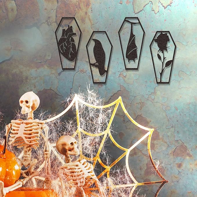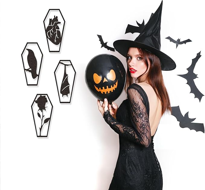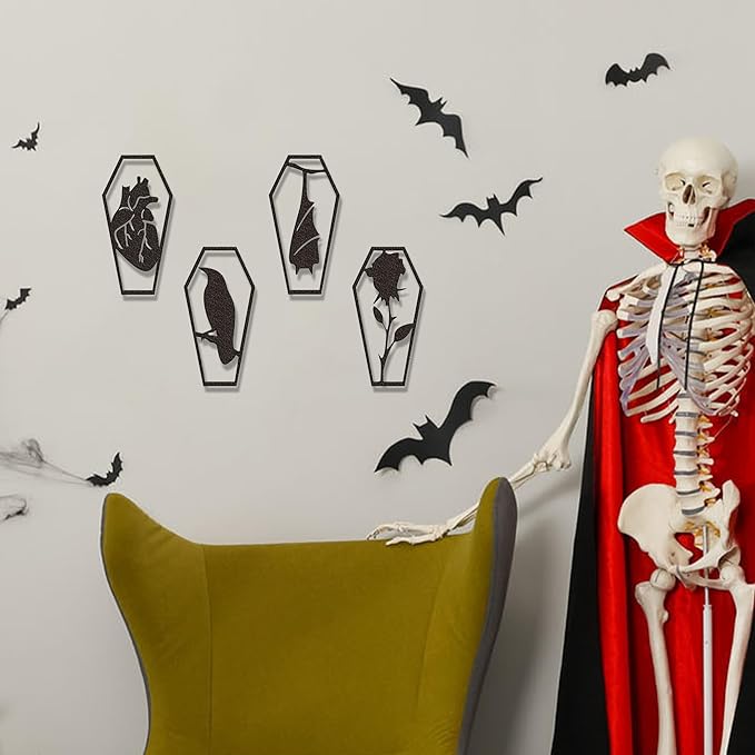 - Horror Décor Collection Essential: Already own gothic home accents? This 4-piece set is a must-add to your horror décor collection. Each coffin radiates a creepy atmosphere, transforming walls into captivating, spine-chilling focal points for you and guests.