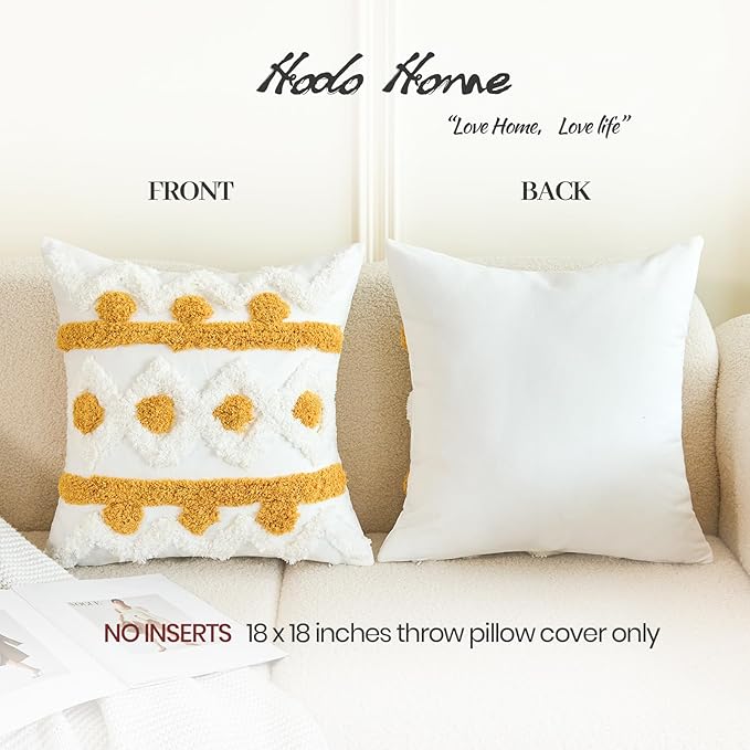 HOdo Home 18x18 Throw Pillow Covers, 2PCS Tufted Boho Jacquard Pillow Covers,Farmhouse Decorative Pillow Cover,Pillow Cases for Couch Sofa Bed Stylish Decor, Simple Textured Cushion Sham
