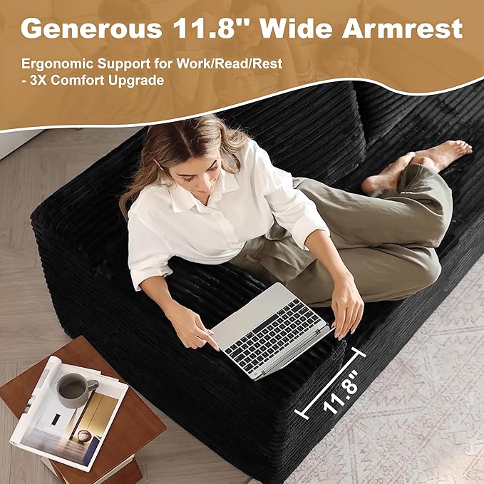 136" Sectional Couches for Living Room Modern Modular Sofa with L-Shape Couchs Upholstered Boneless Couch Deep Seat Sectional Couch with Chaise (Black, Right Facing Chaise+3Seaters+Ottoman)