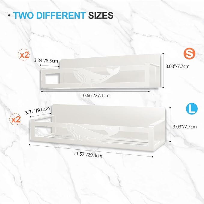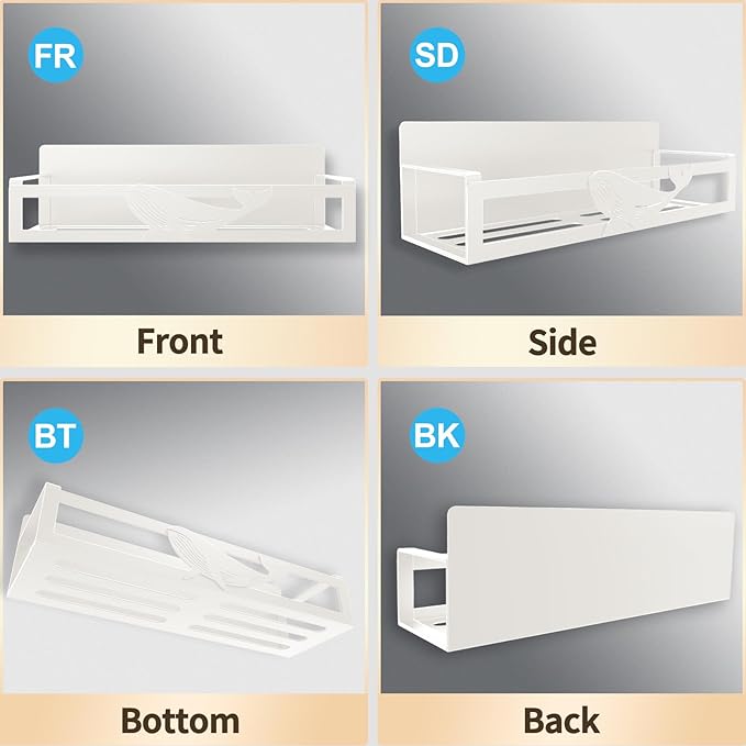 Magnetic Spice Rack for Refrigerator, 4-Pack Metal Seasoning Organizer for Kitchen Storage Organization, Space Saving Magnetic Shelf for Fridge, Pantry, Laundry Room, White