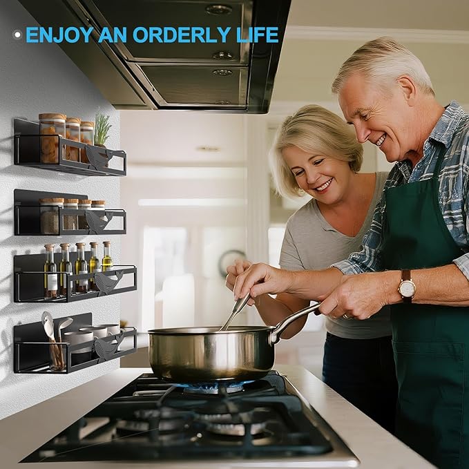 - Space-Saving & Super Organized: Frees up counter space by mounting vertically on the fridge. Keeps spices neatly visible and within easy reach – no more messy cabinets, maximizes kitchen space
