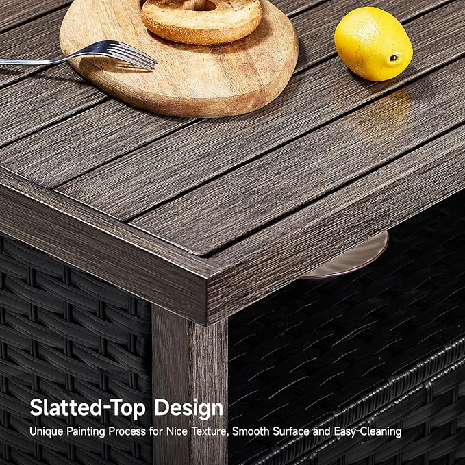- Hand-painted Slatted-top: Every slat is a canvas! Artisans meticulously paint the steel slats, creating unique patterns that shimmer under sunlight. The airy gaps between slats add farmhouse charm – perfect for setting out exquisite dinners and desserts. This isn’t just a outdoor bar, it’s a conversation-starting work of art!