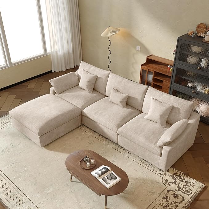 - ⛅[Comfortable Cushions]The cushion of this modular sofa is filled with down and velvet, increasing the comfort and rebound performance of the sofa cushion, bringing you a more comfortable sitting and lying feeling, allowing you to relax completely on the cloud sofa.