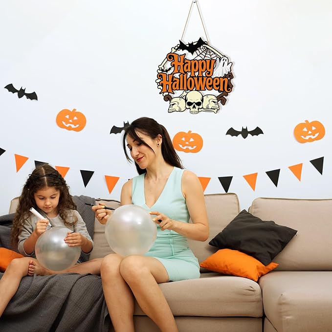 • unique design: our halloween decorations for home combine ghosts, skulls, bats, and "happy halloween" word, classic and unique, detailed and exquisite, to meet your halloween home decor needs