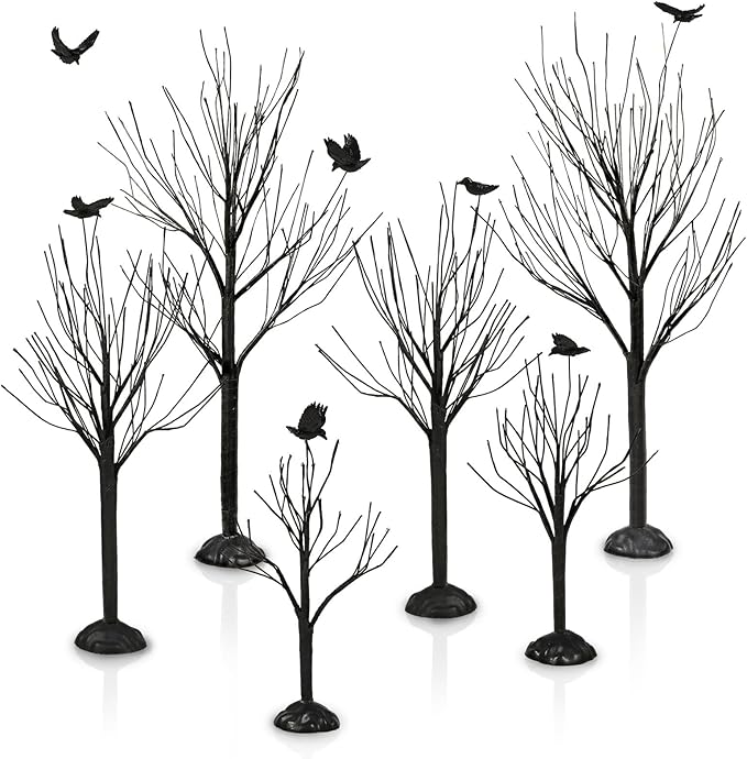 Warmtree 6 Pcs Halloween Village Trees Mini Decor Tree Artificial Tabletop Branch Trees, Halloween Village Accessories with Crows Figurine for Holiday Home Garden Office Festival Decor