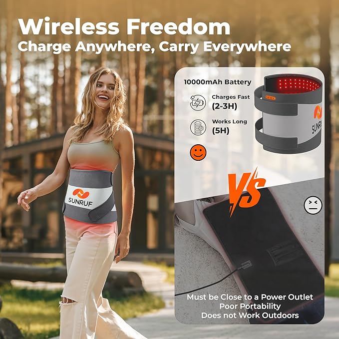 - 【10000mAh Rechargeable Cordless Therapy】Enjoy complete freedom of movement with our powerful 10000mAh rechargeable infrared light therapy. The long-lasting battery provides up to 8 sessions per charge - no cords or outlet dependence. This cordless red light therapy for body design means you can use it anywhere, anytime - at home, office, outside, or while traveling.