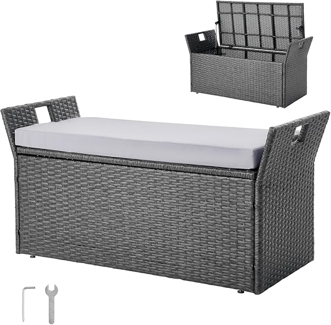 - Sturdy & Durable: Made with alloy steel frame, this PE rattan storage bench supports up to 400 lbs, providing a stable structure that won't easily deform or wobble over time. The PE rattan resists cracking and fading, ideal for long-term outdoor use.