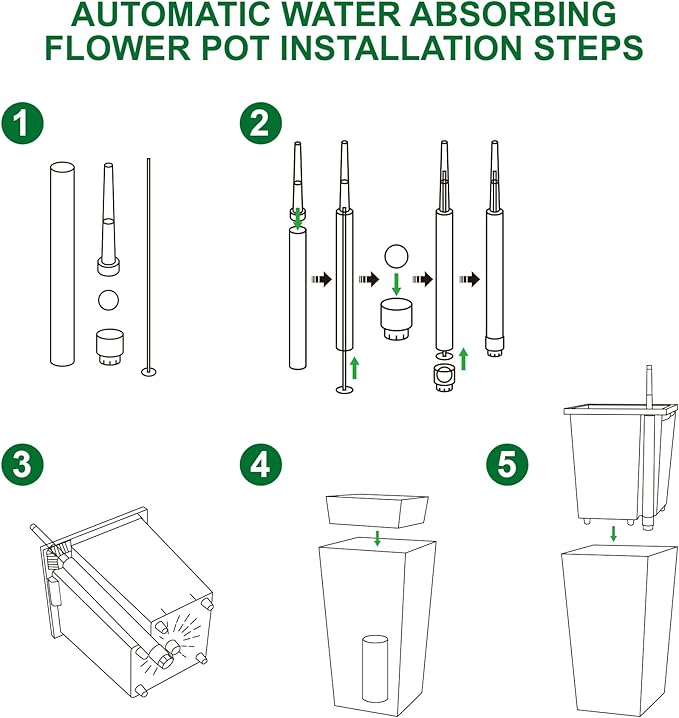 - Automic Watering System: Each tall black planters comes with built-in drainage holes and a sink to ensure that your greenery absorbs water smoothly and minimizes root rot. When the water level is low, the automatic watering system kicks in to provide your plants with the necessary moisture with minimal effort