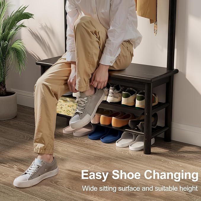 - [3-in-1 Coat Rack] Our hall tree combines three functions in one: hooks for coats and bags, a shoe bench for changing shoes, and a shoe rack to organize your footwear—this freestanding coat rack brings you a tidy, convenient, and cozy entryway at home