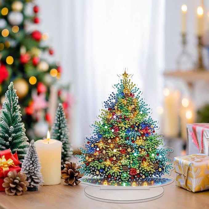 Diamond Art Kit for Adult Christmas, 5D Diamond Art Painting, Double Sided Decorative Special-Shaped Rhinestone Desktop Ornaments, DIY Acrylic Ornaments (Christmas Tree)