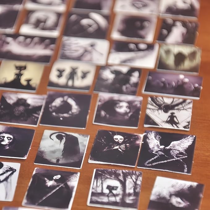 - Centerpiece Miniature DSLR Camera Prop: Features a realistic, miniature black DSLR camera (perfect 1:6 scale detective or paranormal investigator prop) plus dozens of unique miniature darkened horror posters & abstract charcoal art pieces.