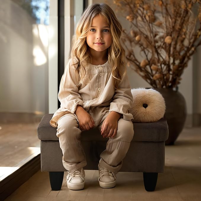- AMPLE STORAGE: This ottoman offers generous storage capacity for items like pillows, blankets, shoes, seasonal decor, books, toys, and more. Designed with convenient hinges, the lid stays open smoothly and closes gently with a soft-close mechanism. Ideal for organizing your living space.