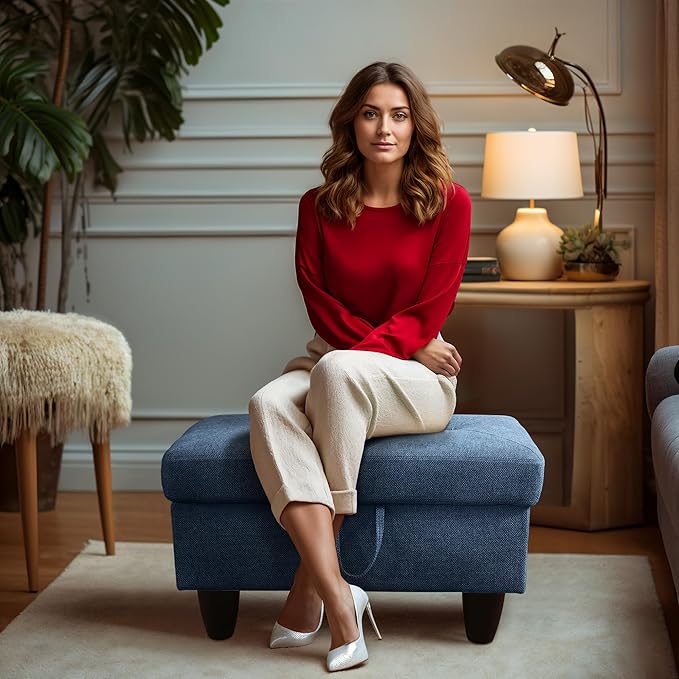 - BENCH OTTOMAN: This adaptable storage ottoman functions as a comfortable bench, perfect for entryways, living rooms, and bedrooms. Blending style with practicality, it offers both seating and storage in one stylish piece. Sit down and enjoy the ideal mix of comfort and convenience this bench ottoman provides.