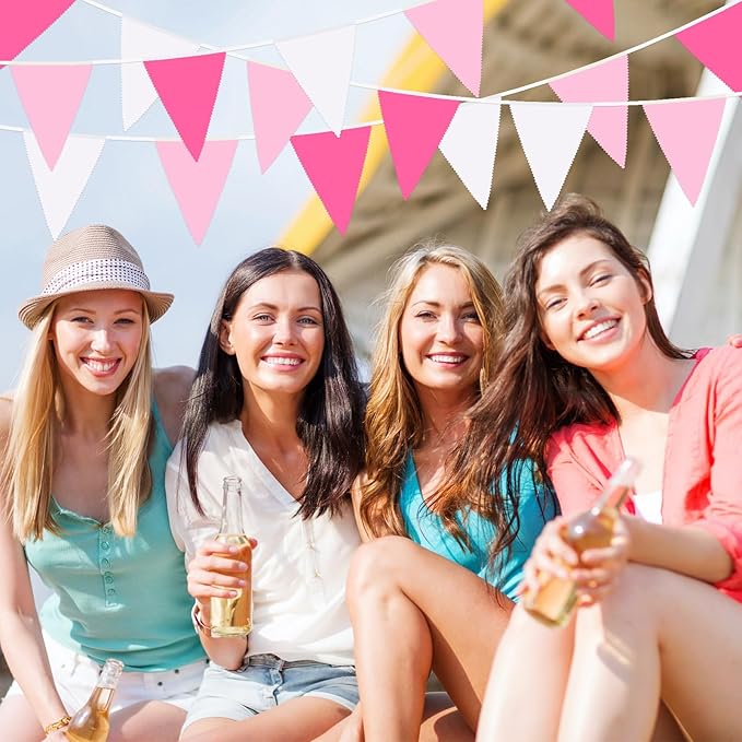 - Unique Design: Ingeniously blend bright pink, light rose pink and white to create a unique and romantic color combination. 30 pieces pink flags are arranged and hung, forming a visual effect of gradual color change. Whether simple and fresh style or a sweet and dreamy style activity, pink wall decor can become the focus of the audience with unique color, adding unique charm to the activity