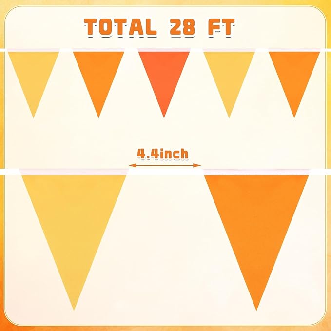 - Double-Sided Printing: The double-sided printing design makes orange yellow tangerine fall triangle flags show vivid colors at any angle. 3 autumn theme colors create a cheerful and warm atmosphere for your activities and make your celebration more eye-catching