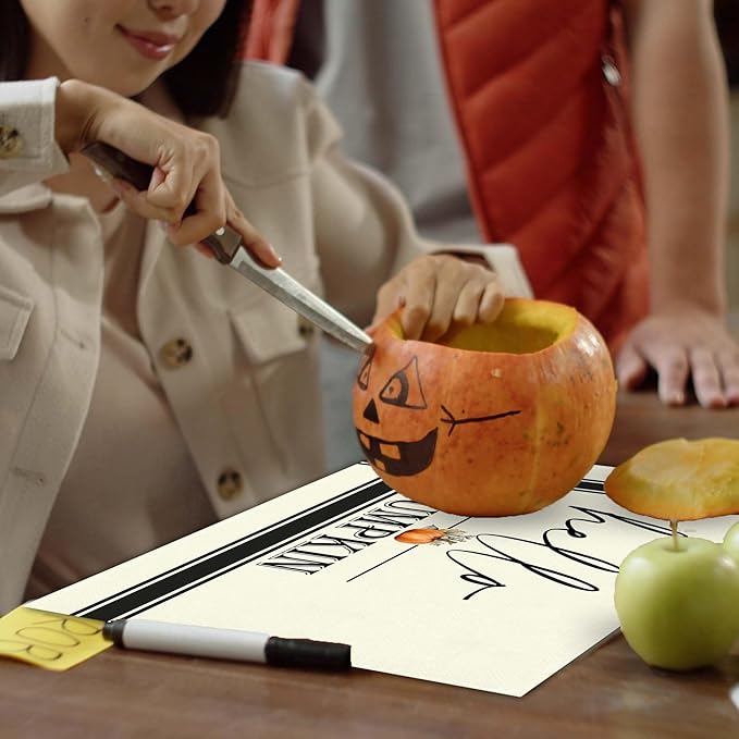Hello Pumpkin Placemats Set of 4, 12x18 Inch Black Fall Buffalo Plaid Table Mats, Washable Heat Resistant Place Mats for Kitchen Dining Table, Autumn Home Farmhouse Decor-B02