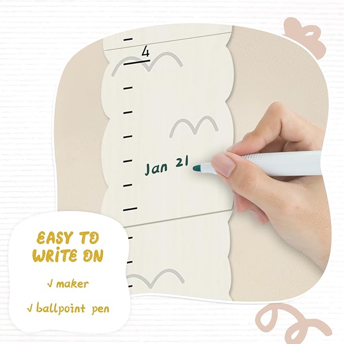 - Easy to Mark: The height measurement is engraved with clear and precise scales, you can customize different shapes of marker cards to record baby's height(with name and date), which is convenient for you to record your baby's growth moments at any time and witness every step of your baby's growth.