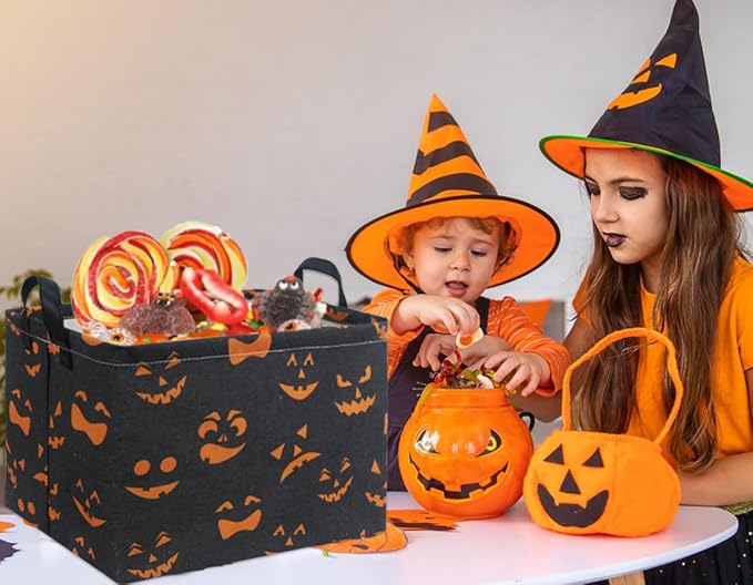 HIYAGON Rectangular Halloween Basket for Boys and Girls Kids Trick or Treat Pumpkin Basket for Halloween Parties Cute Storage Bin Organizer Box Room Decor(Black Pumpkin)
