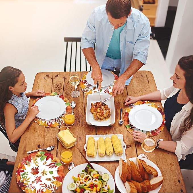 • Serves 50 Guests: Each pack includes 50 premium thanksgiving fall round paper placemats ensure you have enough place mats to entertain all your guests, with a gold pumpkin maple leaf pattern on them, perfect for your party while keeping the party setup neat and stylish.