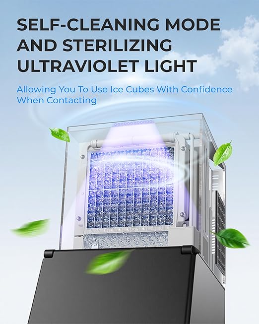 - ๐ง[ Clean and Hygienic Ice Making โ Self-Cleaning Mode and Water Filter ] - Our industrial ice maker features a self-cleaning mode that easily cleans the internal parts of the machine. It also comes with a water filter to ensure clean, hygienic ice, meeting strict food safety standards. All components in contact with water and ice are made of food-grade materials. Note: The self-cleaning function only supports partial cleaning; a complete cleaning requires disassembling certain parts of the machine.
