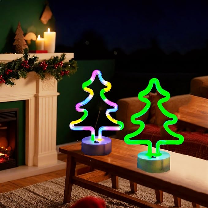 - 【Christmas Decorations】This christmas neon sign can be used not only in the home, but also in rooms, walls, parties, Christmas, clubs, Halloween, festivals, dorms, Windows, shops, barbershops, art galleries, offices, bars, cafes, restaurants, birthday parties, weddings, anniversaries and many other occasions.Christmas tree night lamp are very bright and noticeable from far out in the street or window.