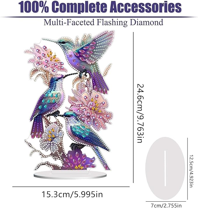Diamond Painting Kits for Adults Beginners, 5D Full Drill Hummingbird Crystal Art Desktop Ornament, DIY Single Sided Home Office Desk Decor, Creative Craft Gift Set with Tools