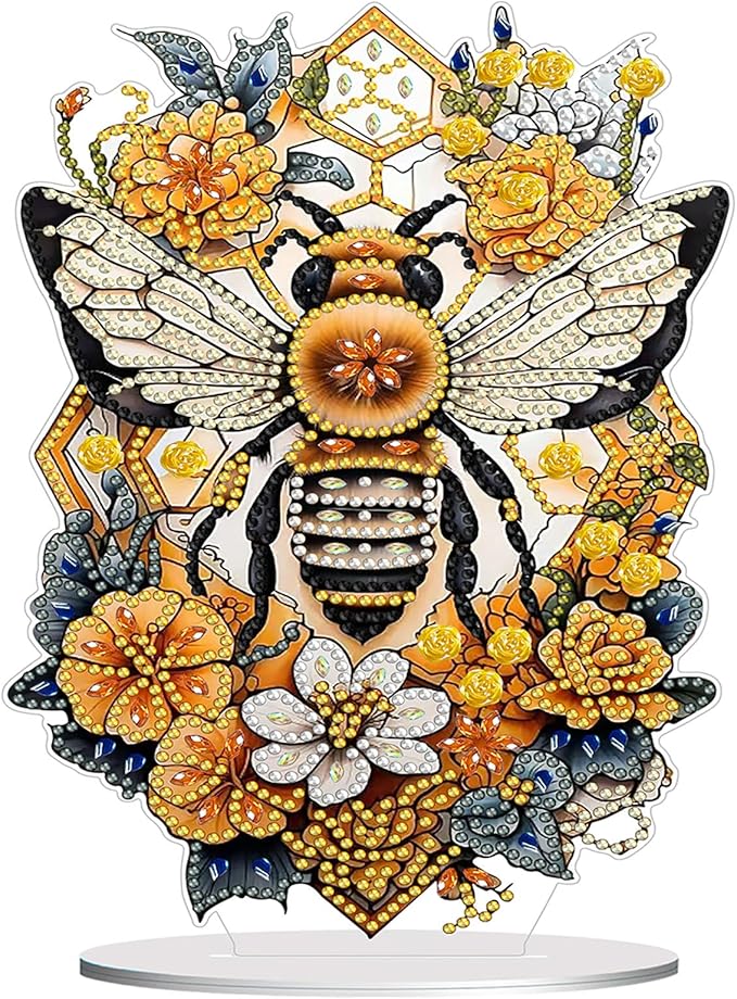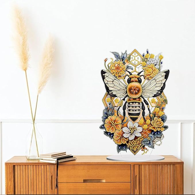 Diamond Painting Kits for Adults Beginners, 5D Full Drill Bee Crystal Art Desktop Ornament, DIY Single Sided Home Office Desk Decor, Creative Craft Gift Set with Tools
