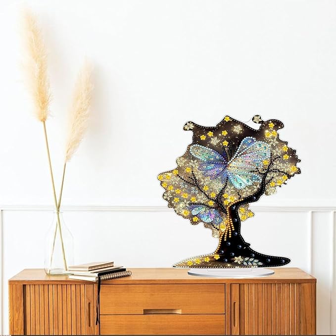 Diamond Painting Kits for Adults Beginners, 5D Full Drill Tree of Life Crystal Art Desktop Ornament, DIY Single Sided Home Office Desk Decor, Creative Craft Gift Set with Tools