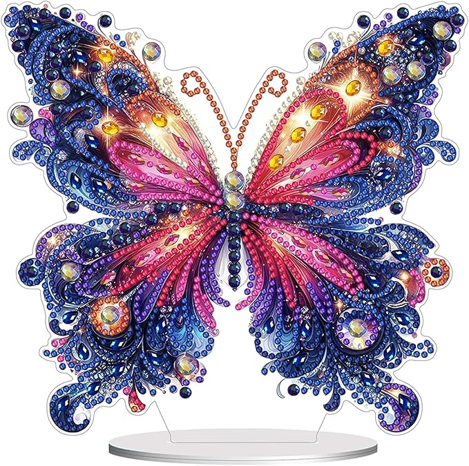 Diamond Painting Kits for Adults Beginners, 5D Full Drill Flowers and Butterfly Crystal Art Desktop Ornament, DIY Single Sided Home Office Desk Decor, Creative Craft Gift Set with Tools