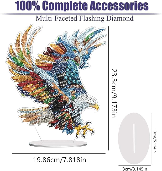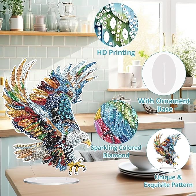 Diamond Painting Kits for Adults Beginners, 5D Full Drill Eagle Crystal Art Desktop Ornament, DIY Single Sided Home Office Desk Decor, Creative Craft Gift Set with Tools