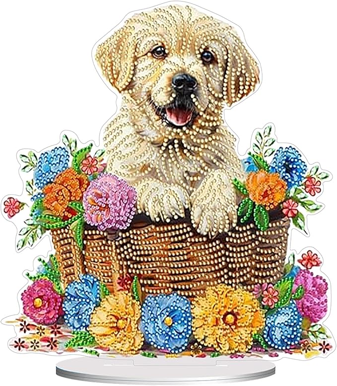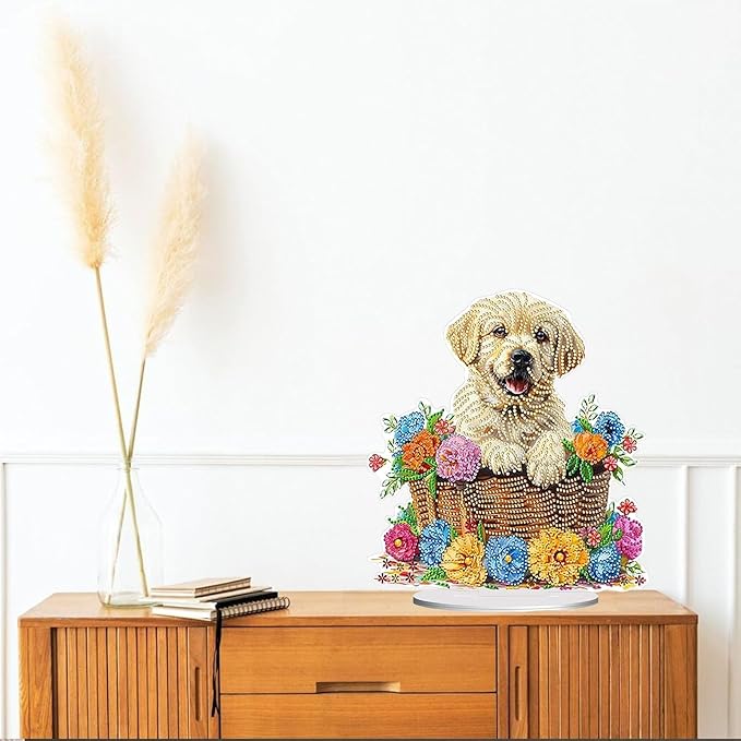 Diamond Painting Kits for Adults Beginners, 5D Full Drill Dog Crystal Art Desktop Ornament, DIY Single Sided Home Office Desk Decor, Creative Craft Gift Set with Tools