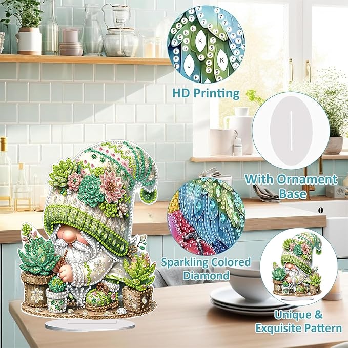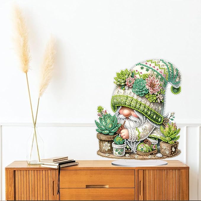 Diamond Painting Kits for Adults Beginners, 5D Full Drill Dwarf Succulents Crystal Art Desktop Ornament, DIY Single Sided Home Office Desk Decor, Creative Craft Gift Set with Tools