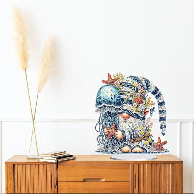 Diamond Painting Kits for Adults Beginners, 5D Full Drill Dwarf Ocean Crystal Art Desktop Ornament, DIY Single Sided Home Office Desk Decor, Creative Craft Gift Set with Tools