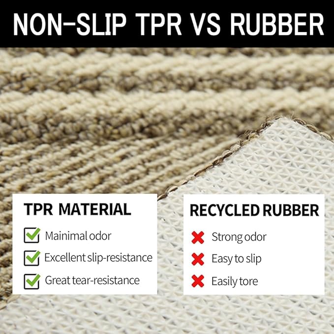 - Durable and Safe . The floor mat is woven with double layers, the texture issolid and durable, and it will not collapse after being stepped on for a longtime. Not easy to fall off Our floor mats are recyclable, safe, andodorless, making them ideal for families with pets or children