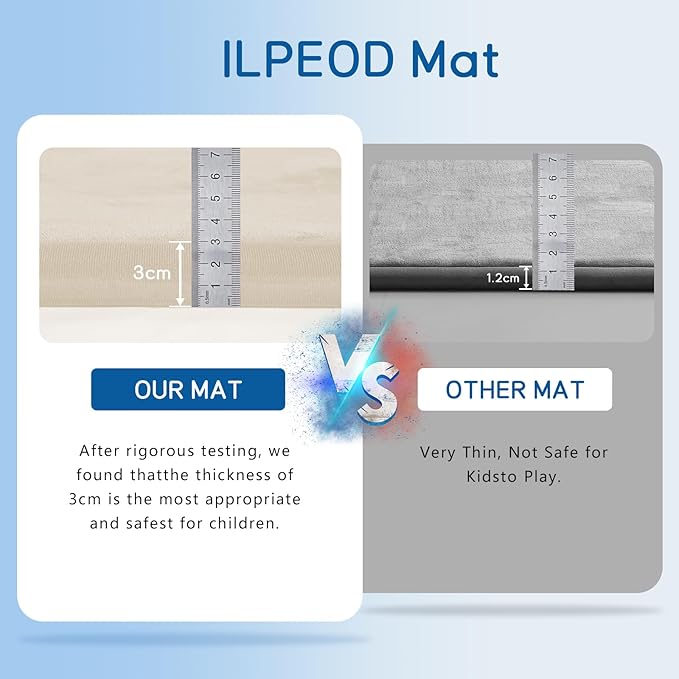 - ๐HOW TO CARE FOR YOUR MAT:When you open the package,it may be wrinkled,very flat and inelastic.Don't fret - this is normal! As long as it is left for 3-5 days, the mat will naturally regain its thickness and elasticity. we recommend steaming or ironing it to speed up recovery. After you have completed the steaming/ironing, your thick floor padded mat should rebound and be ready to use!