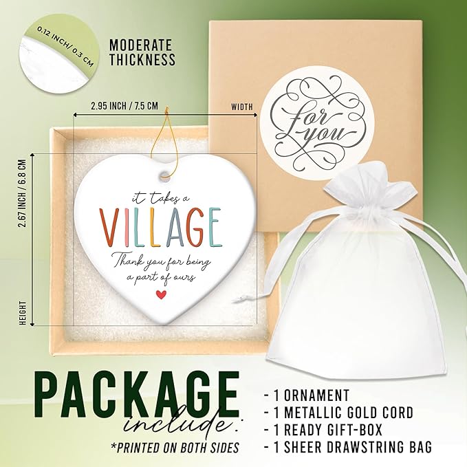 - IT TAKES VILLAGE GIFTS: Seeking a heartfelt gesture? Our ceramic ornament is perfect for expressing gratitude and appreciation. Suitable for men or women, it serves as a lasting reminder of the impact they've had. Let your loved ones know that their efforts are cherished and will never be forgotten. Ideal gift for thank you, retirement, farewell, goodbye, going away, leaving, work anniversary