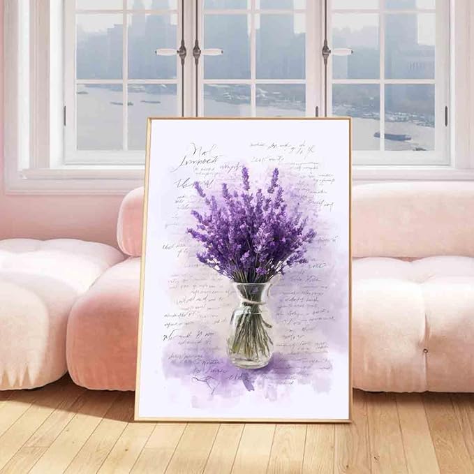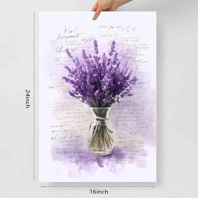 Lavender Wall Art Purple Flower Pictures Flowers In Vase Canvas Wall Art Country Floral Watercolor Flower Prints Rustic Floral Painting Plant Pictures Botanical Flower Prints Decor 16x24inch No Frame