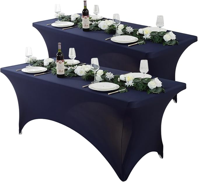 Craft And Party 2 Pack 6ft Navy Blue Spandex Tablecloth – Fitted Stretch Cover – Universal Fit for Folding Tables – Wrinkle-Free, Washable – Ideal for Parties, Weddings, Events