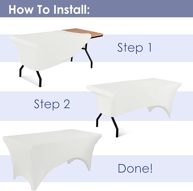 - Perfect Fit and Secure Design: Designed for 8-foot tables (96L x 30W x 30H Inches), this two-way stretch spandex cover features reinforced leg pockets to keep it firmly in place, preventing slipping for a sleek, professional look.