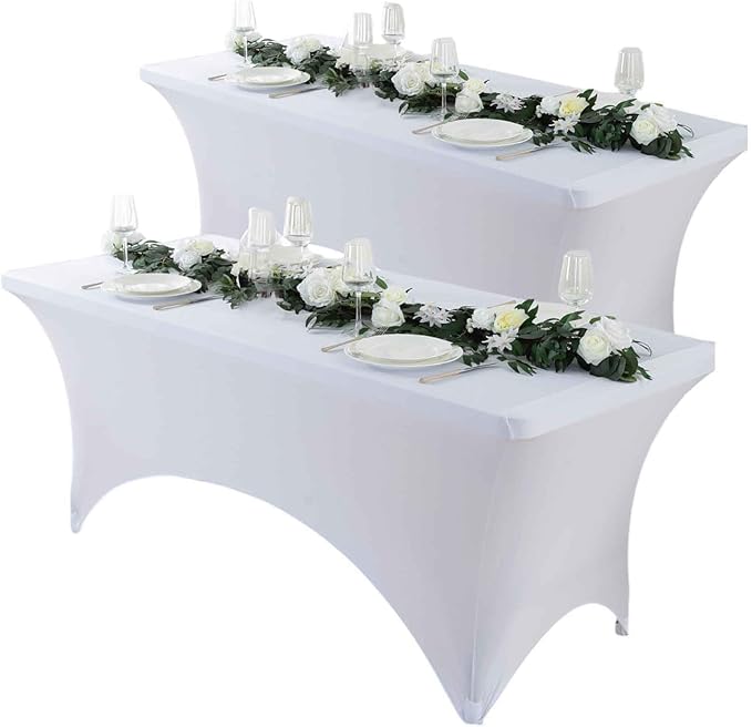 Craft And Party 2 Pack 4ft White Spandex Tablecloth – Fitted Stretch Cover – Universal Fit for Folding Tables – Wrinkle-Free, Washable – Ideal for Parties, Weddings, Events