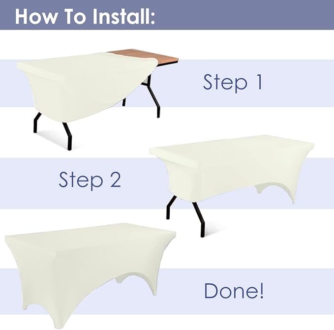 - Perfect Fit and Secure Design: Designed for 8-foot tables (96L x 30W x 30H Inches), this two-way stretch spandex cover features reinforced leg pockets to keep it firmly in place, preventing slipping for a sleek, professional look.
