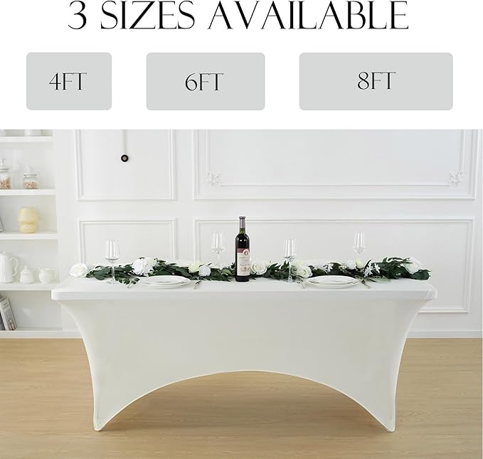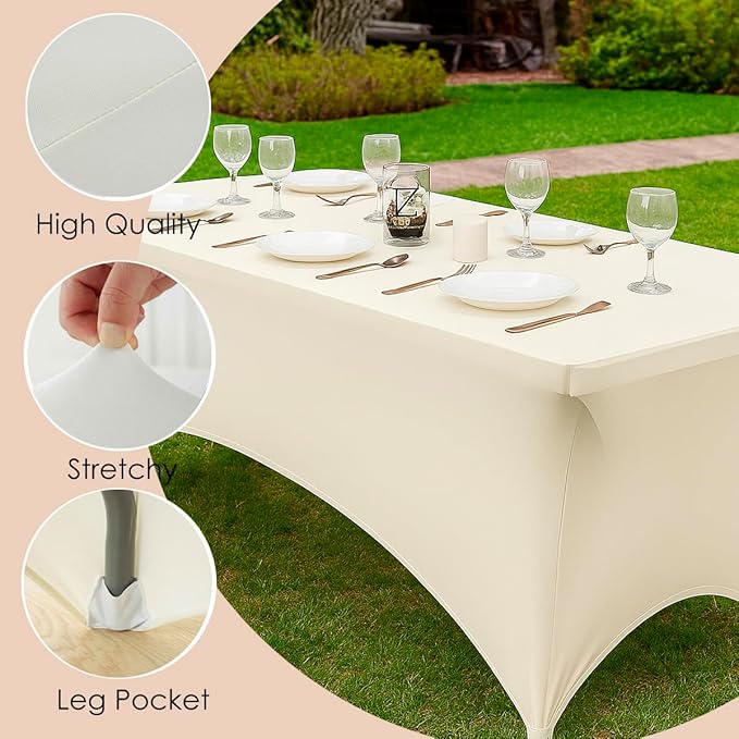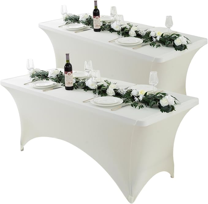 Craft And Party 2 Pack 8ft Ivory Spandex Tablecloth – Fitted Stretch Cover – Universal Fit for Folding Tables – Wrinkle-Free, Washable – Ideal for Parties, Weddings, Events