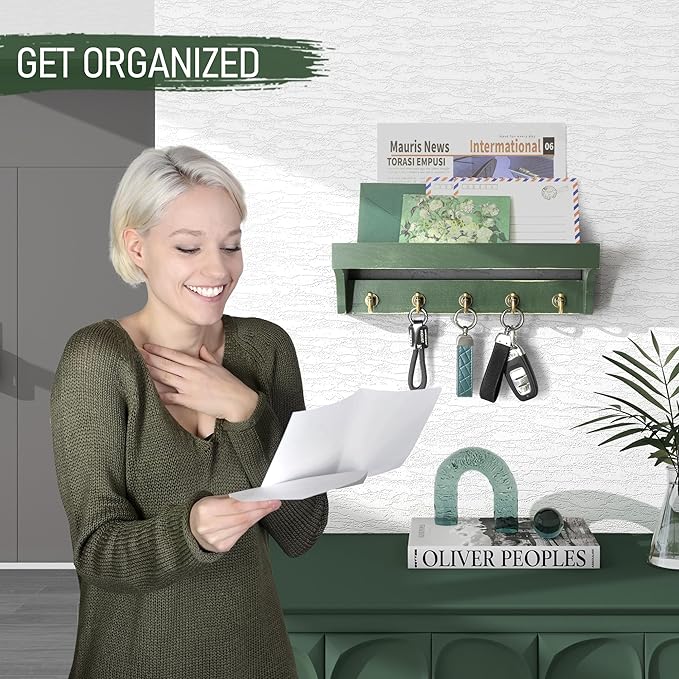 - [PERFECT ORGANIZING GIFT] Delight loved ones with this green pine wood mail organizer wall mounted — expertly packaged with hardware & instructions. The genius locating plate enables one-step, easily mounting. Ideal for farmhouse decor enthusiasts seeking stylish, functional wall hooks.