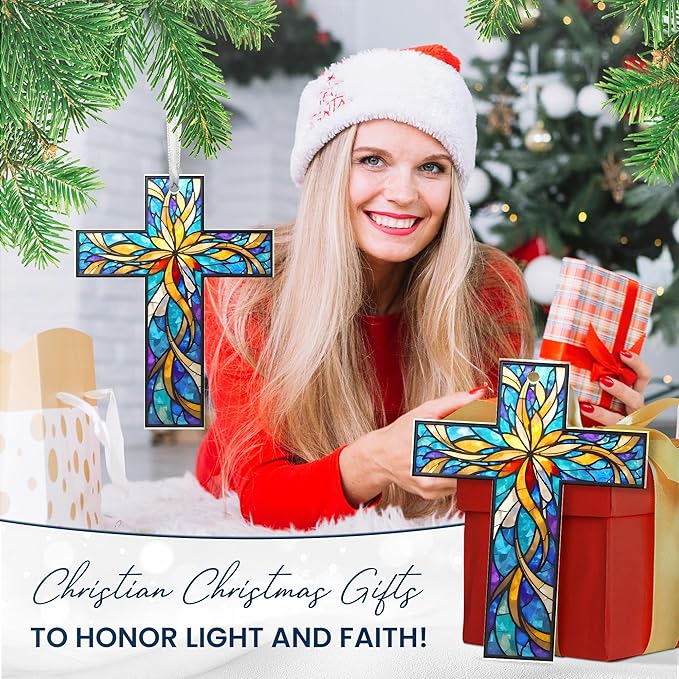 - PREMIUM ACRYLIC CRAFTSMANSHIP – Expertly made from high-quality acrylic, these unique Christmas ornaments hold meaning as treasured Christian Christmas gifts for men and women alike. A Cross Christmas ornament ideal for Christmas gifts for religious women, or faith based gifts for women who value shared beliefs and spiritual connection.