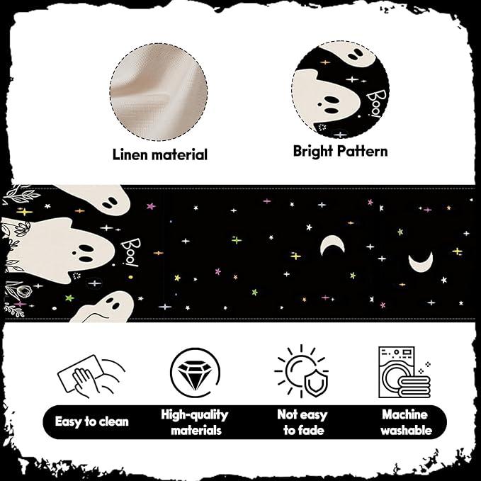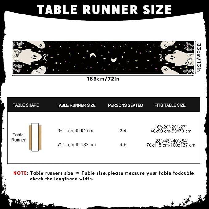 - Package Content: Includes 1 Halloween table runner (13x72 inches), printed with ghost patterns and classic Halloween elements, instantly turning your dining table into the focus of the holiday