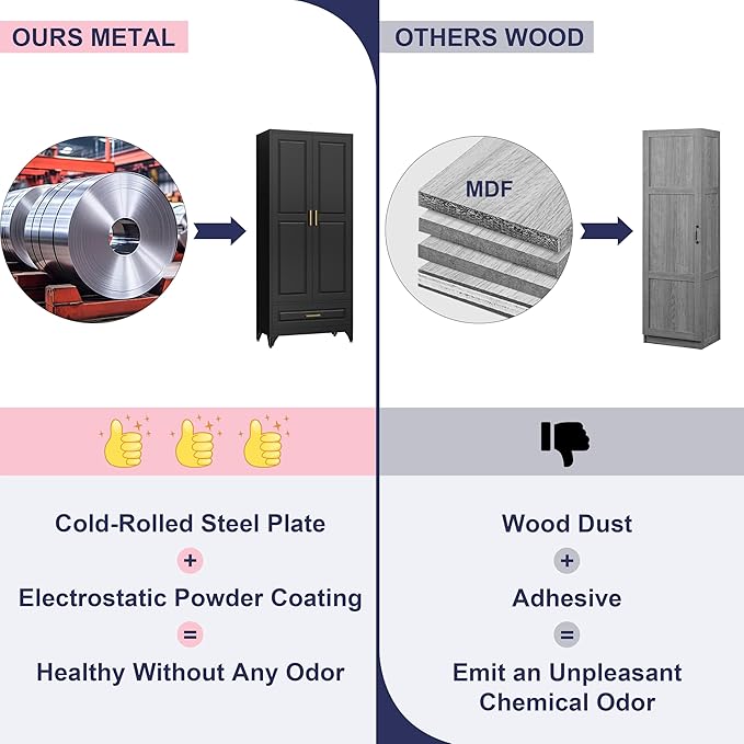 - Long Term Use and Easy Cleaning: This metal pantry cabinet features rust-resistant powder-coated finish that ensures long-lasting use in kitchen or bathroom. Easy to clean and resistant to stains and fingerprints, it is a practical choice for busy households